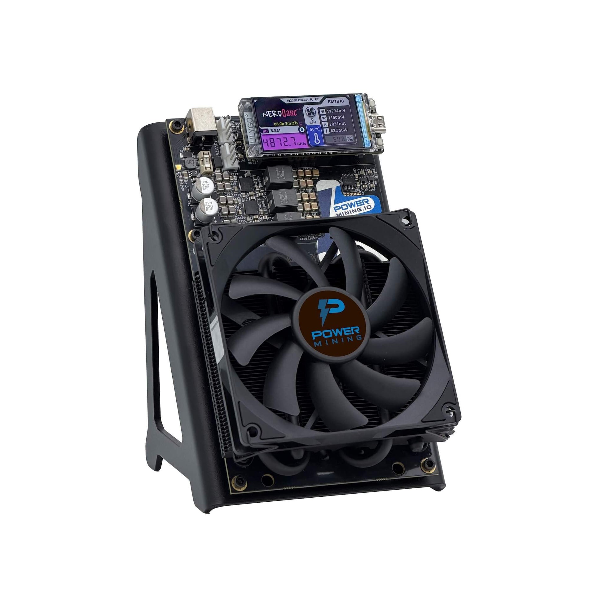 NerdQaxe++ wird von vier BM1370-Chips aus dem Antminer S21 Pro, S21+ und S21+ Hydro angetrieben – einige der effizientesten Miner der Branche – und liefert eine Gesamt-Hashrate von ca. 4,8 TH/s. Bei einem Energiepreis von 0,20 $ pro kWh belaufen sich die Stromkosten auf etwa 11,5 $ pro Monat.