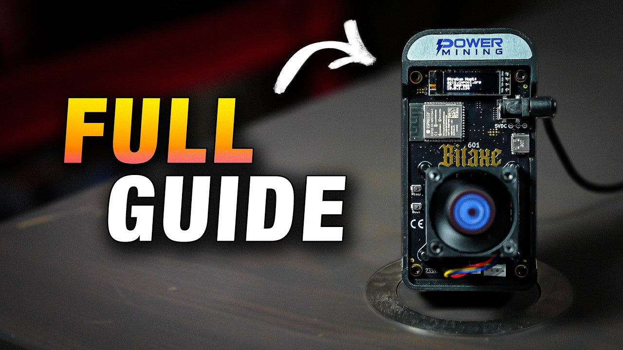 Power Supply: 5V 6A high-quality power supply with Bitaxe logo branding. US / EU / UK or AU plug included