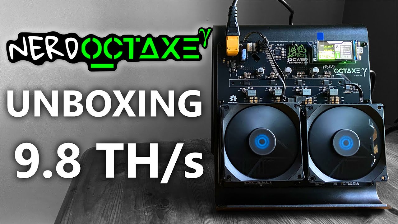 NerdOctaxe Gamma is a 9.6 TH/s 8 chip Bitcoin home miner that consumes ~160 watts.